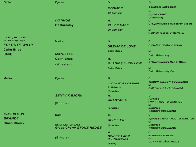 BLACK LABEL SOCIETY Grandiflora Date of birth: 29.10.2009 (Gigi) INTERCHAMPION (in approval)Champion of Poland4 x Junior Winner2 x Best Junior in Breed4 x CACIB2 x BOB PEDIGREE PICTURES