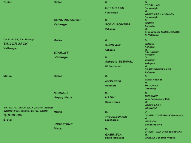 ARTEMISS Blataj02.08.2003 -04.05.2017 INTERCHAMPIONChampion of Czech RepublicChampion of PolandChampion of Latvia4 x Best Female in Breed5 x CACIB2 x BOB12 x CAC 2.8.2003-04.05.2017 PEDIGREE PICTURES