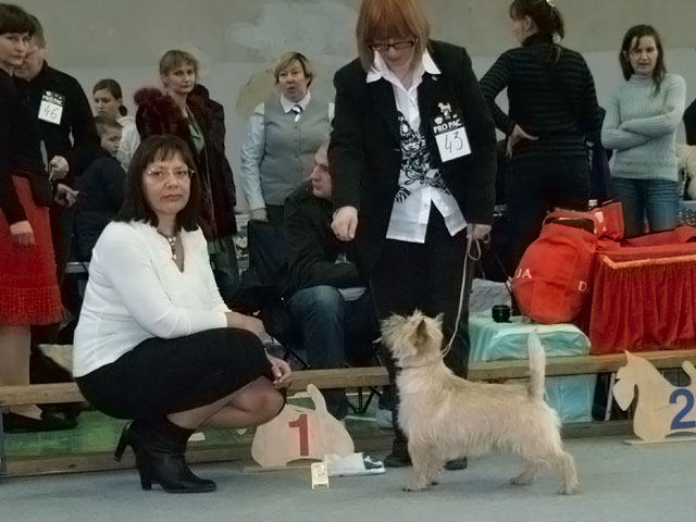 Nasz młody Cairn Alta Carya FCI WITALIS po raz pierwszy wystawiony w klasie pośredniej