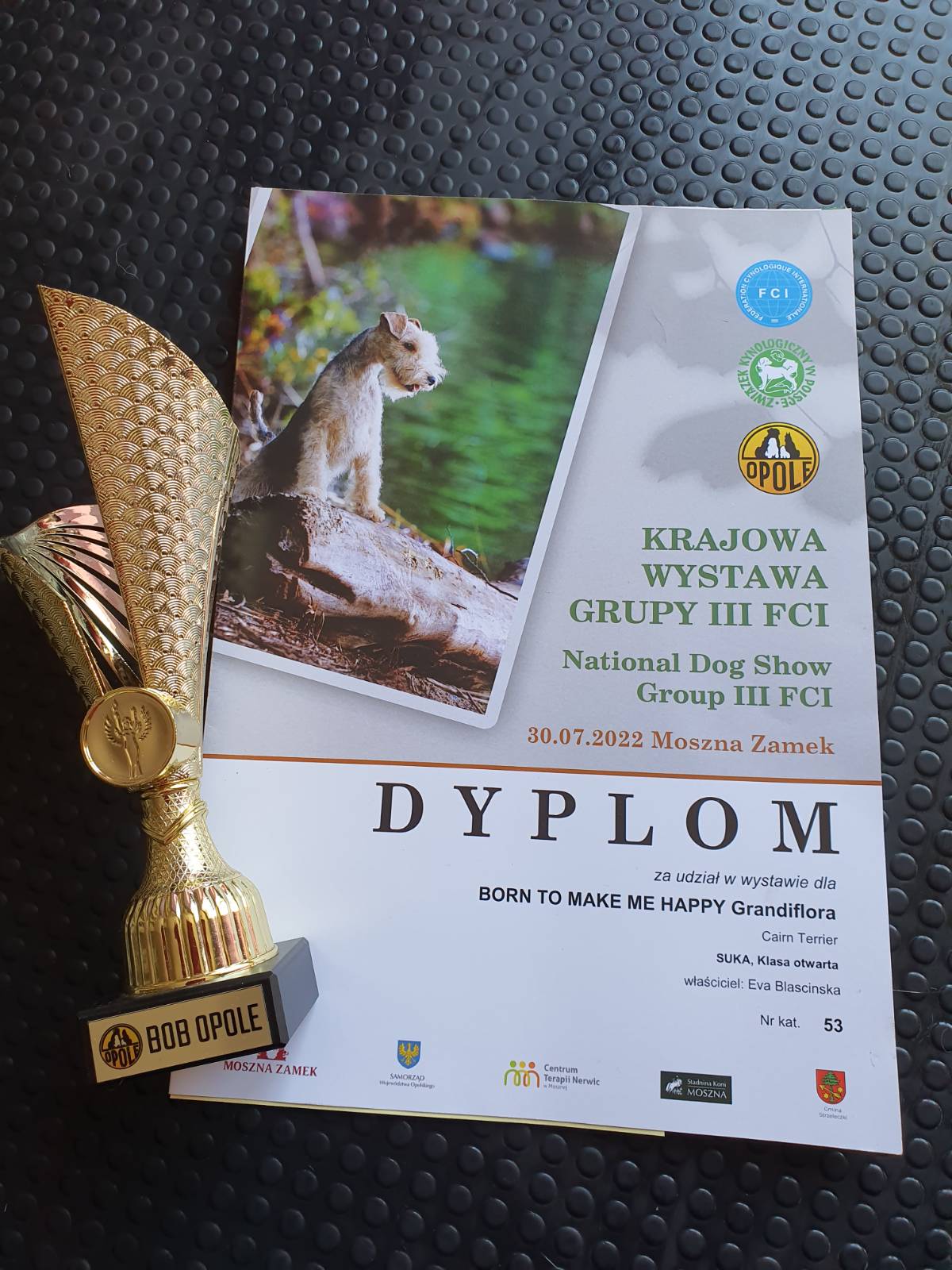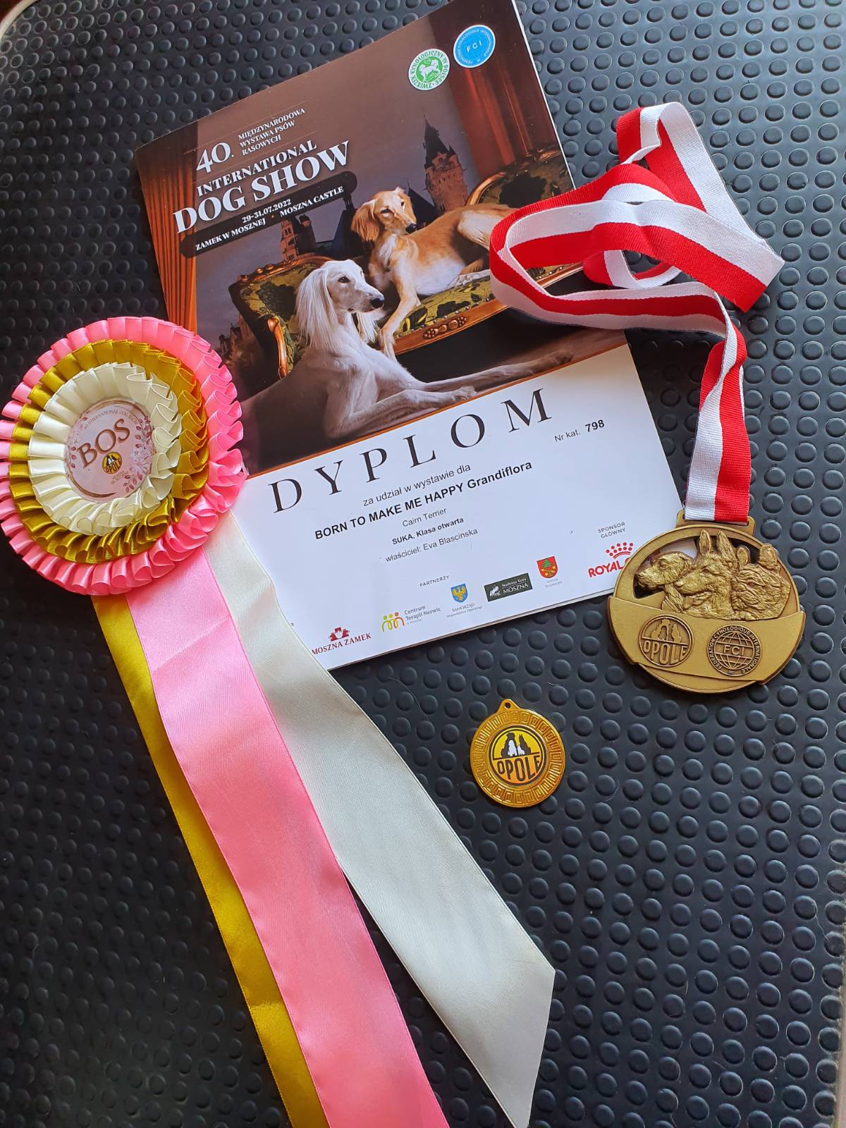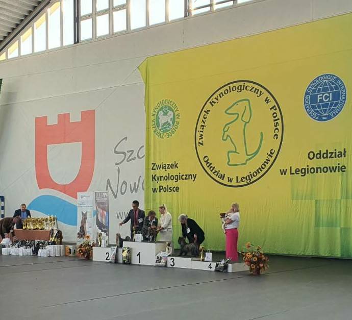 Kota - DON'T WORRY BE HAPPY Grandiflora - in intermediate class he got excellent, CAC, Best Dog, Best of Breed and at the finals he was IV Best dog branch Legionowo and III BOG