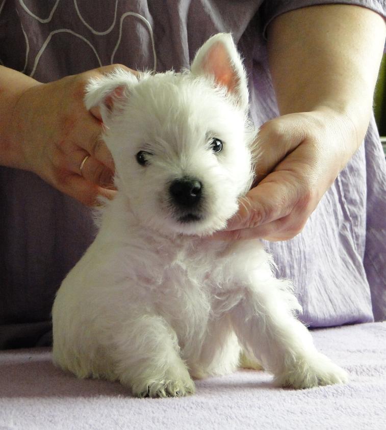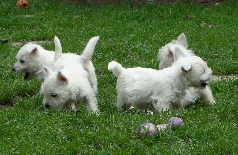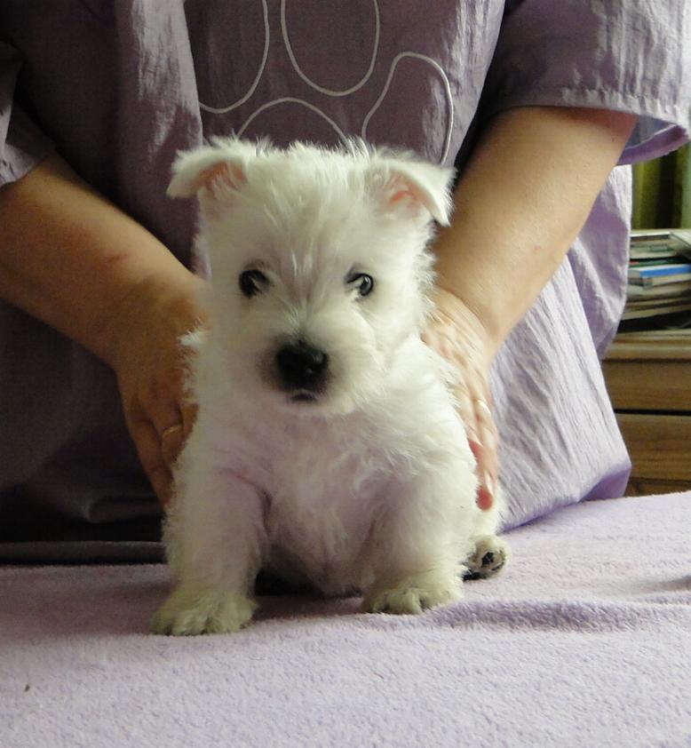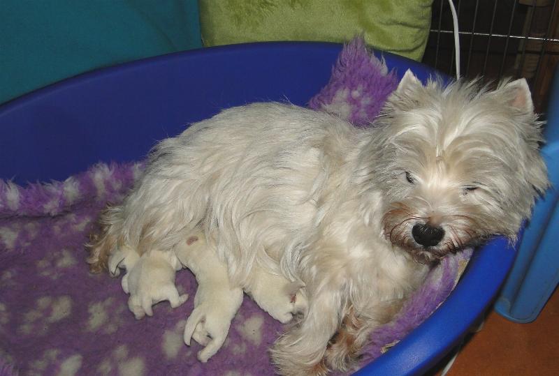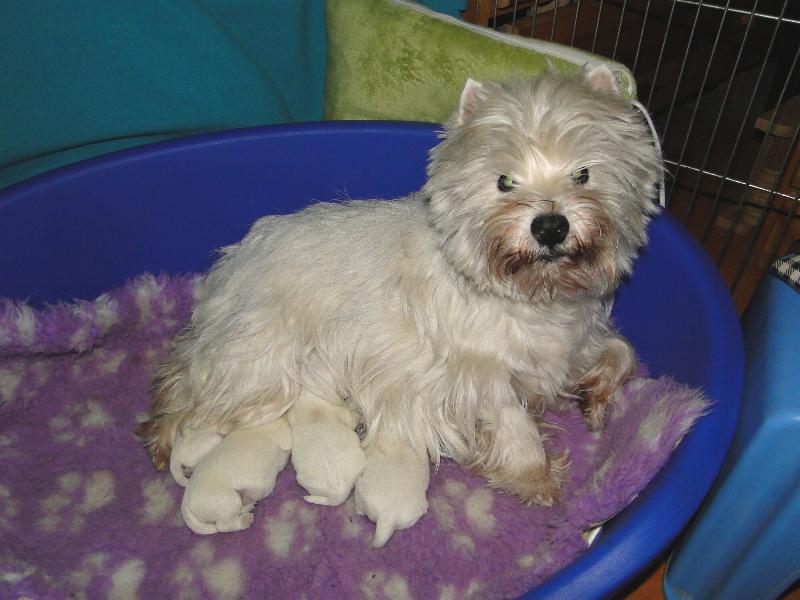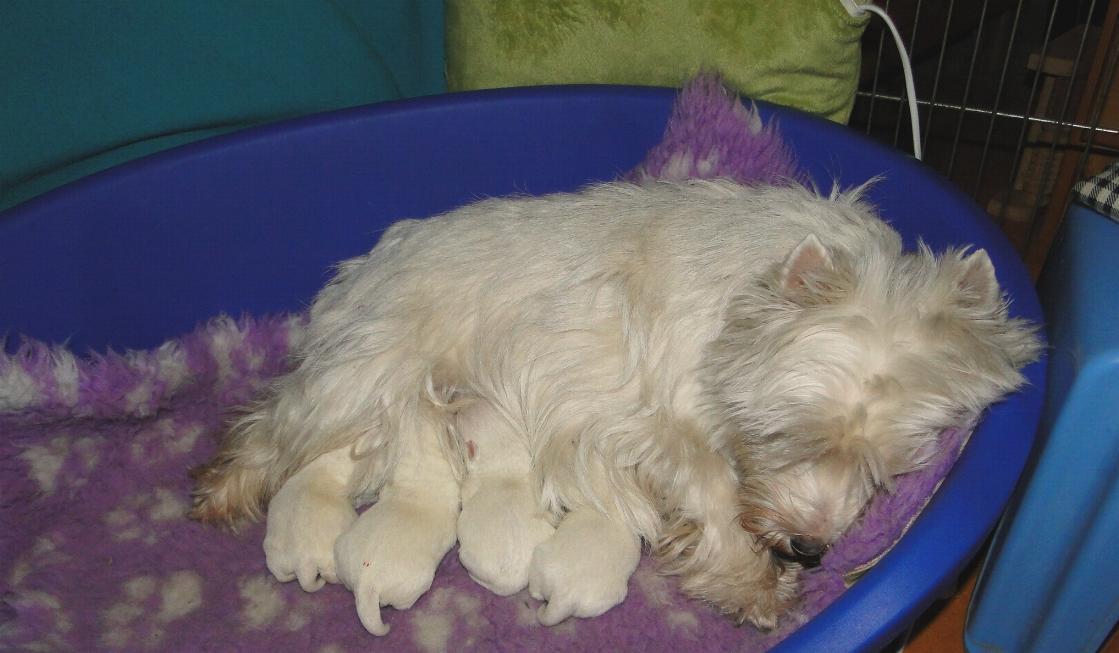 New Westie puppies are born :) Three boys and one girl. Mom is our dear girl METALLICA AT Grandiflora and proud Dad - ROXHOLM RING TONE /imp. from GB/ own. Mrs Marina Barsukova from Belarus. More in puppies