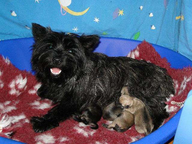 Na świat przyszły 4 suczki Cairn Terrier. Mamą szczeniąt jest nasza BLACK LABEL SOCIETY Grandiflora. Dumny ojciec - Limecastle's JOY FOR SOLIPSE (wł. Jana Kadnarova, Słowacja). Więcej na stronie miotu "S".