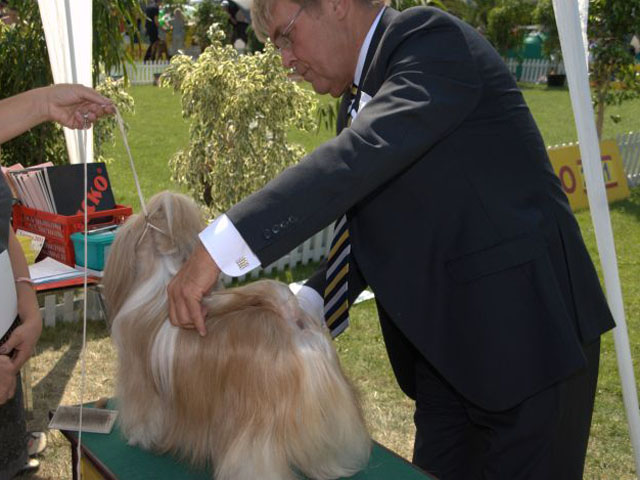 Międzynarodowa wystawa PRESTIGE w Lesznie. Ogromne gratulacje dla Lilli Korczewskiej (hod. Ach! Ach!) i jej wychowanki SOPHIE Grandiflora (Shih-Tzu) za zdobycie Najlepszego Weterana w Rasie! Lilciu, dziękuję za tak troskliwie zadbaną Sophisię, w tym wieku - taka kondycja - pozazdrościć! Shih-Tzu sędziował Peter Jolly (Wlk. Brytania).