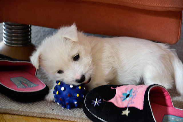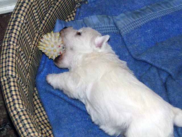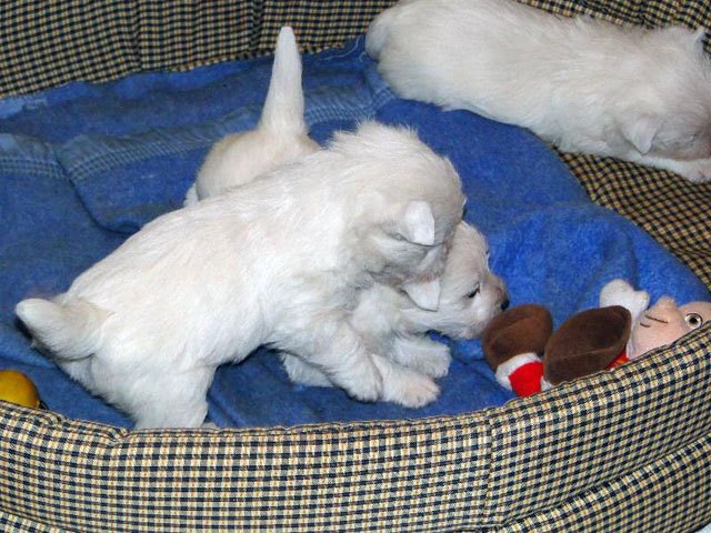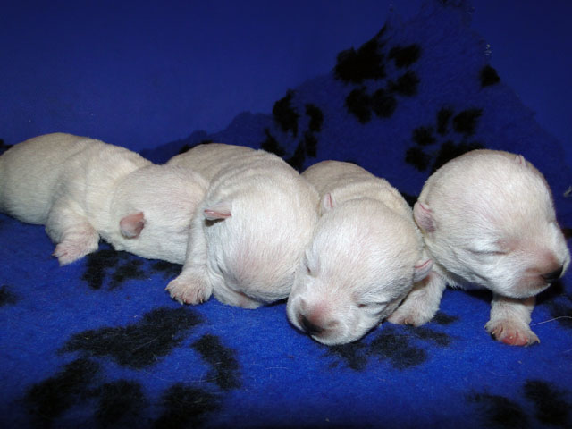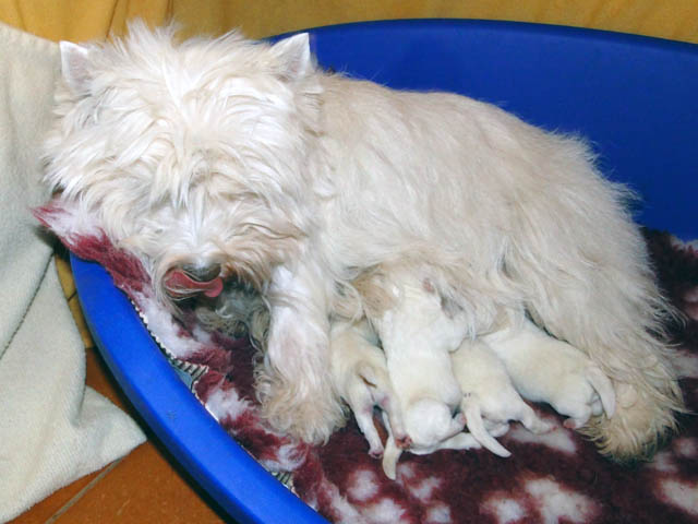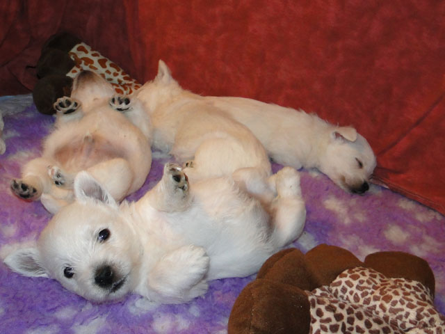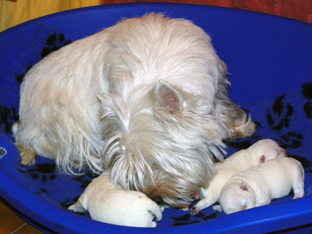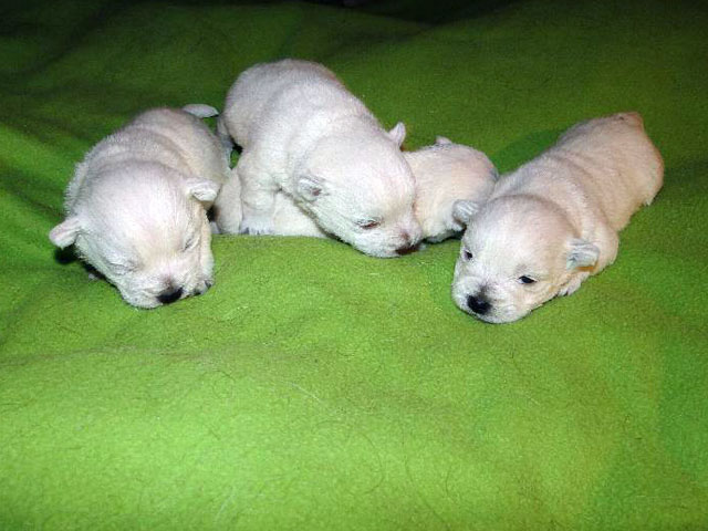 Na świat przyszły maluszki West Highland White Terrier po naszej Metallice i młodym, obiecującym imporcie z Wielkiej Brytanii Karamynd GOES TO STAR WEST (wł. Monika Stritecka z Czech). Jeden piesek i trzy suczki. Szczenięta są już zarezerwowane. Więcej na stronie miotu "A".