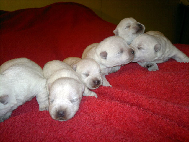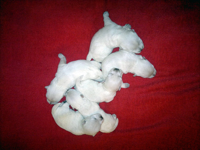 Pięć piesków i jedna suczka urodziło się po naszym reproduktorze MASTER OF PUPPETS Grandiflora i BEBE Lewandków Zagroda. Maluszki przyszły na świat 3 grudnia w hodowli "Białe Pieski" pani Magdy Czajkowskiej.