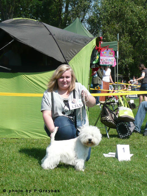 Westie: NIGHTWISH AT Grandiflora - doskonała. Sędzia: M. Trębala. Wielkie gratulacje dla córeczki RUFFUSA Blataj - BLANKA BE MY LUCKY STAR Rizetta (wł. Agnieszka Węglewska) otrzymała ocenę wybitnie obiecującą oraz tytuł Najlepsze Szczenię w Rasie. Gratulacje dla córeczki RUFFUSA Blataj Z Artusiowej Stajni BAHIYYA WHITE GIRL za dzielne prezentowanie się ze swoją panią - Teresą Skibińską. W licznej stawce 10, była 4 doskonała!