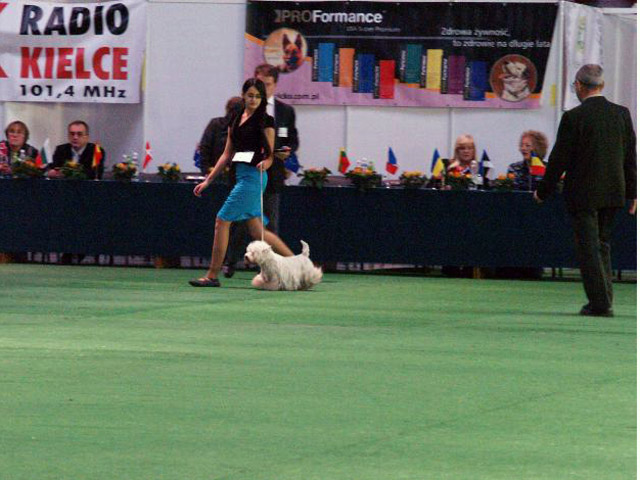 Międzynarodowa Wystawa Psów Rasowych w Kielcach. Westies: DANCING IN SNOW Grandiflora - doskonała, Najlepszy Weteran w Rasie. CLANG! BOOM! STEAM! Grandiflora (wł. M. Pławczyk) w klasie młodzieży - doskonała, 4 lokata. Sędzia: Tamara Sarmont (Białoruś). Cairns: